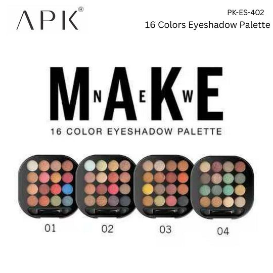Enhance your eye makeup with the APK Make 16 Color Eyeshadow Palette, exclusively from APK Cosmetic Pakistan. This palette offers four unique multicolor options packed with vibrant, blendable shades designed to last all day without fading. Ideal for creating both subtle and dramatic looks, each color delivers rich pigmentation to highlight your eyes beautifully. Whether for daily wear or special occasions, this long-lasting palette ensures your makeup stays flawless and striking.