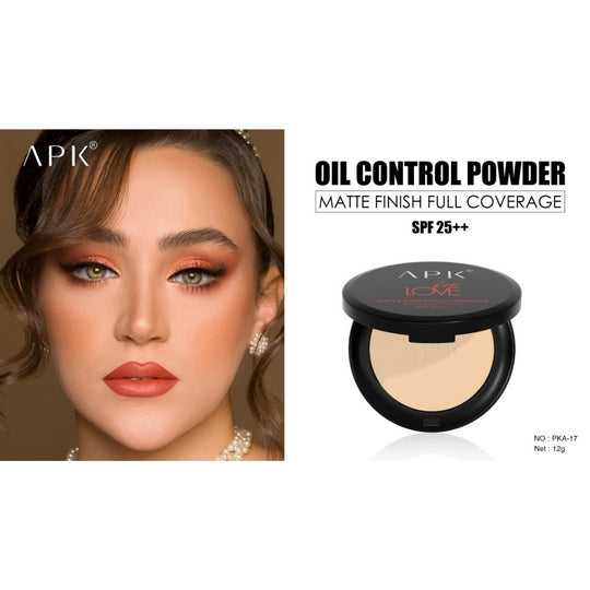 APK Matte Finish Full Coverage Oil Control Powder SPF25++ offers superior matte coverage with effective oil control to keep your skin shine-free throughout the day. Formulated to provide full coverage, this pressed powder evens out skin tone while protecting against harmful UVA and UVB rays with SPF 25++. Ideal for daily use, it ensures long-lasting wear and natural matte skin finish suitable for Pakistan’s climate. Choose from four carefully blended shades to perfectly match your complexion.