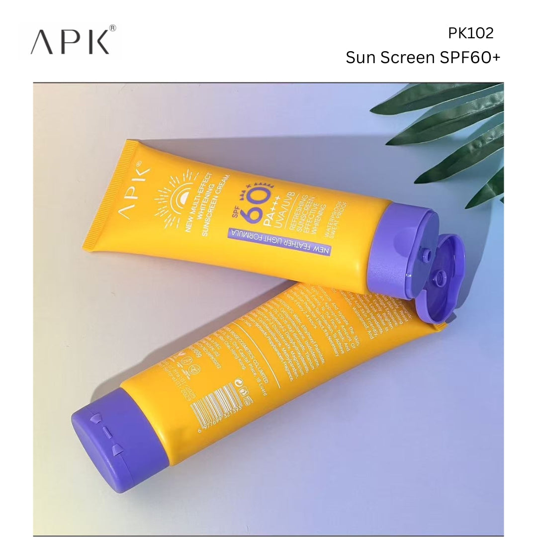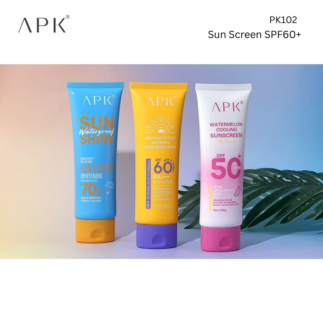 APK Cosmetic's Sun Screen with New Formula delivers professional-grade UV protection with SPF 60, safeguarding your skin against harmful UVA and UVB rays. The advanced waterproof formulation maintains effectiveness even during swimming or perspiration, making it ideal for Pakistan's intense climate. This dermatologist-tested sunscreen combines cutting-edge sun protection technology with a lightweight, non-greasy texture that absorbs quickly without leaving residue. Perfect for daily use on face and body, it prevents premature aging, sun damage, and hyperpigmentation while maintaining your skin's natural moisture balance. Trust APK Cosmetic's expertise in skincare innovation for comprehensive sun defense.
