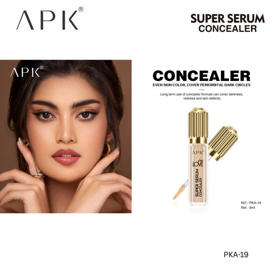 APK Super Serum Concealer delivers lightweight, creamy coverage that resists creasing while effectively hiding periorbital dark circles, redness, and skin imperfections. Its innovative formula offers an instant anti-aging effect and long-term brightness for a more even skin tone. Multi-use and available in six versatile shades, this concealer adapts flawlessly to every complexion for a natural, smooth finish.