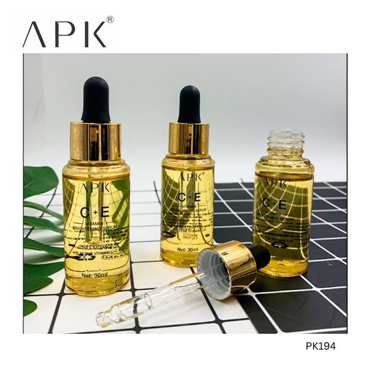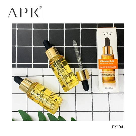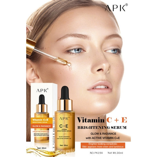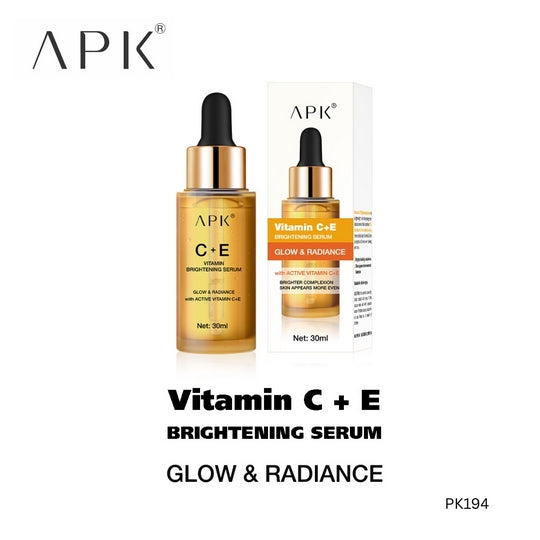 APK Vitamin C+E Brightening Serum combines potent antioxidants Vitamin C and E to visibly brighten skin and promote a radiant complexion. This lightweight formula helps reduce dullness and uneven skin tone, leaving your skin looking luminous and refreshed. Ideal for daily use, it supports skin’s natural glow and combats signs of fatigue for a healthier, more even appearance.